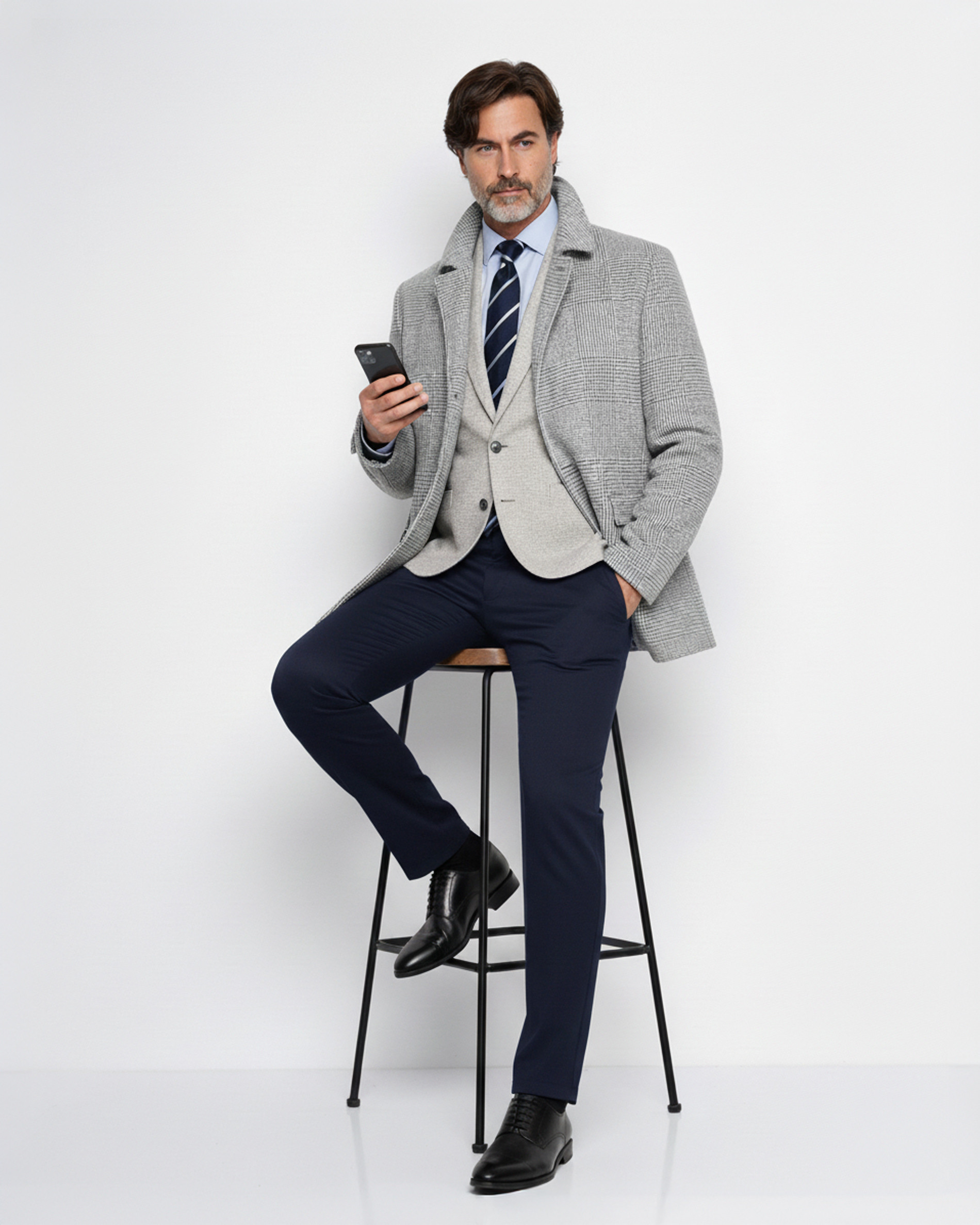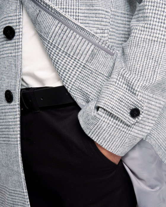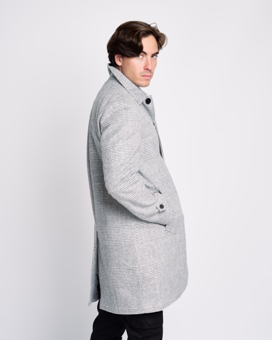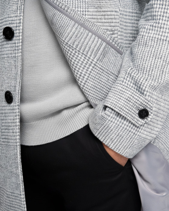 Una pieza con carácter que marca la diferencia. Su elegante estampado de cuadros en tonos grises aporta sofisticación a cualquier look. El corte clásico y la calidad de su tejido te aseguran abrigo y un estilo impecable para el invierno.