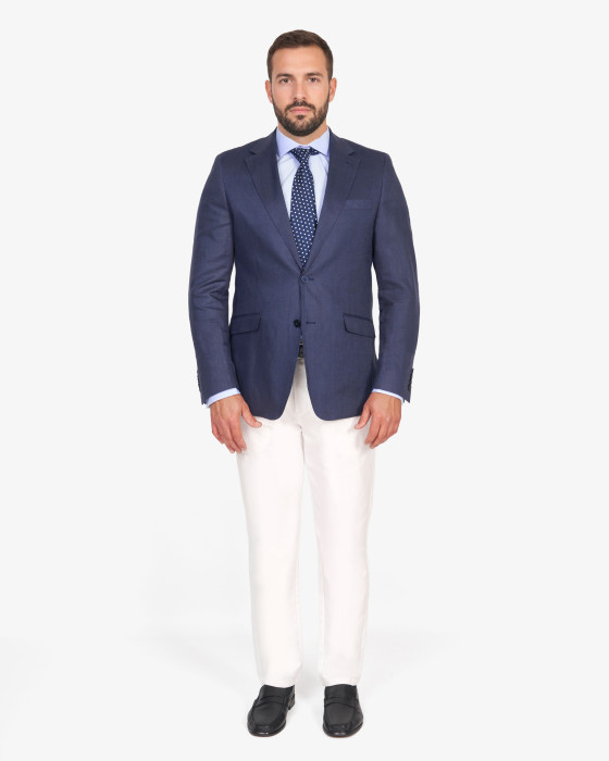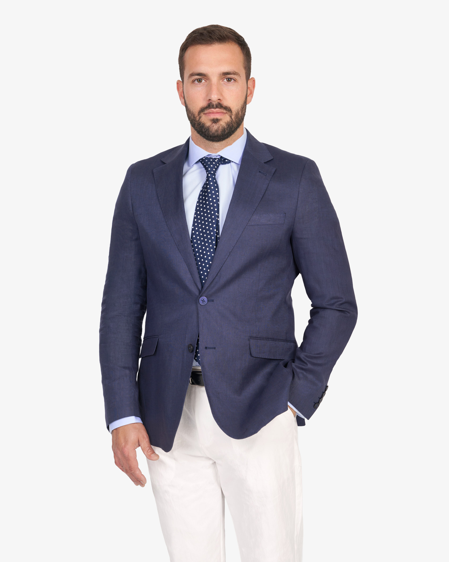 Eleva tu armario estival con esta americana de lino Spagnolo. Una pieza ligera y transpirable que redefine la elegancia relajada. Destaca por sus bolsillos con solapa y un corte impecable que garantiza frescura en cualquier evento. Su tejido natural de alta calidad y el detalle del logo bordado reflejan el estilo mediterráneo de la marca. Ideal para combinar con chinos o camisas de lino.