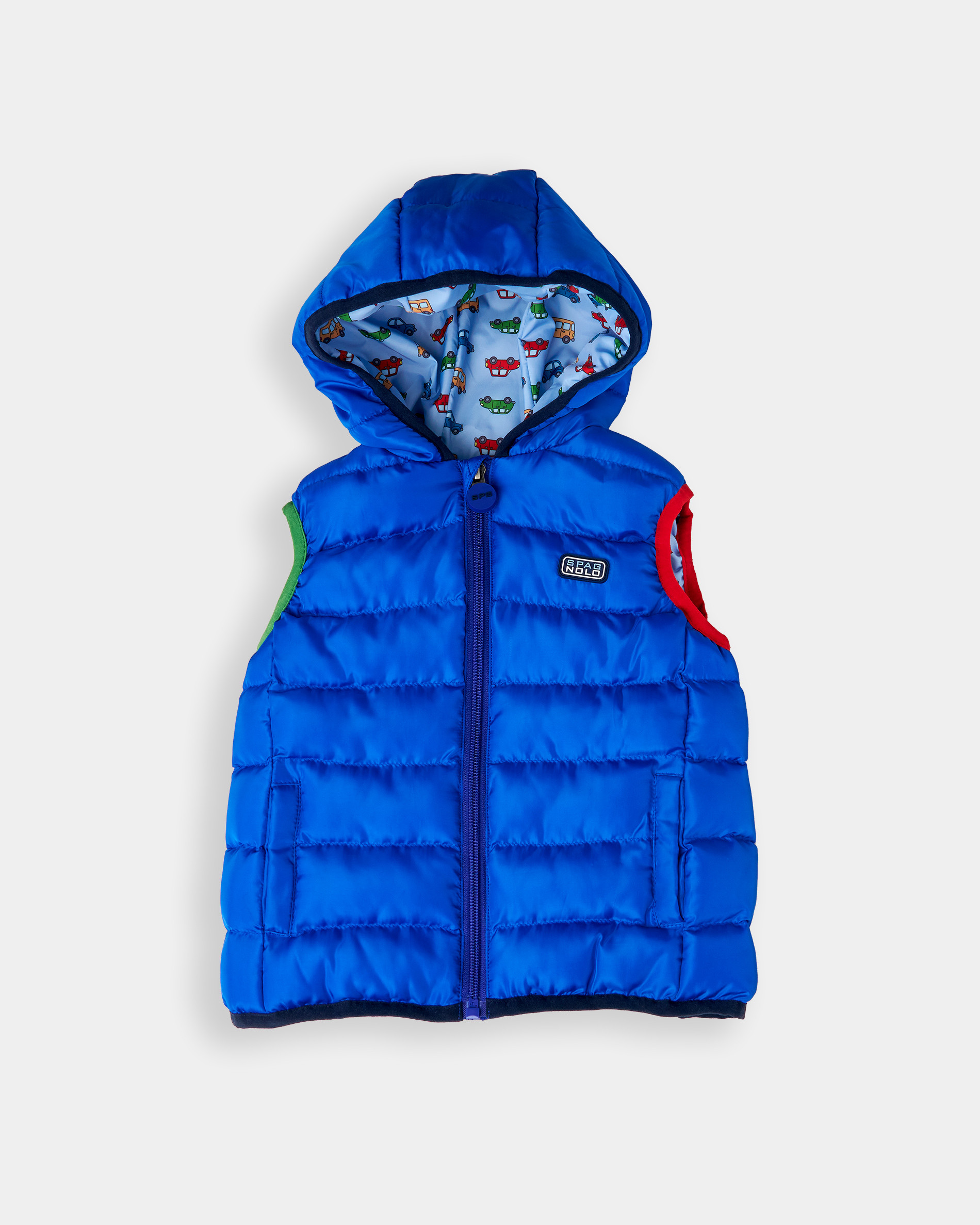 Este chaleco es ideal para proporcionar calidez y libertad de movimiento a los más pequeños con un diseño vibrante.Su color principal es un llamativo azul eléctrico. El interior lleva un divertido estampado de coches que añade un toque de sorpresa y estilo. Es acolchado, proporcionando un abrigo ligero.Una prenda práctica y esencial para el entretiempo, fácil de combinar y con capucha para mayor p