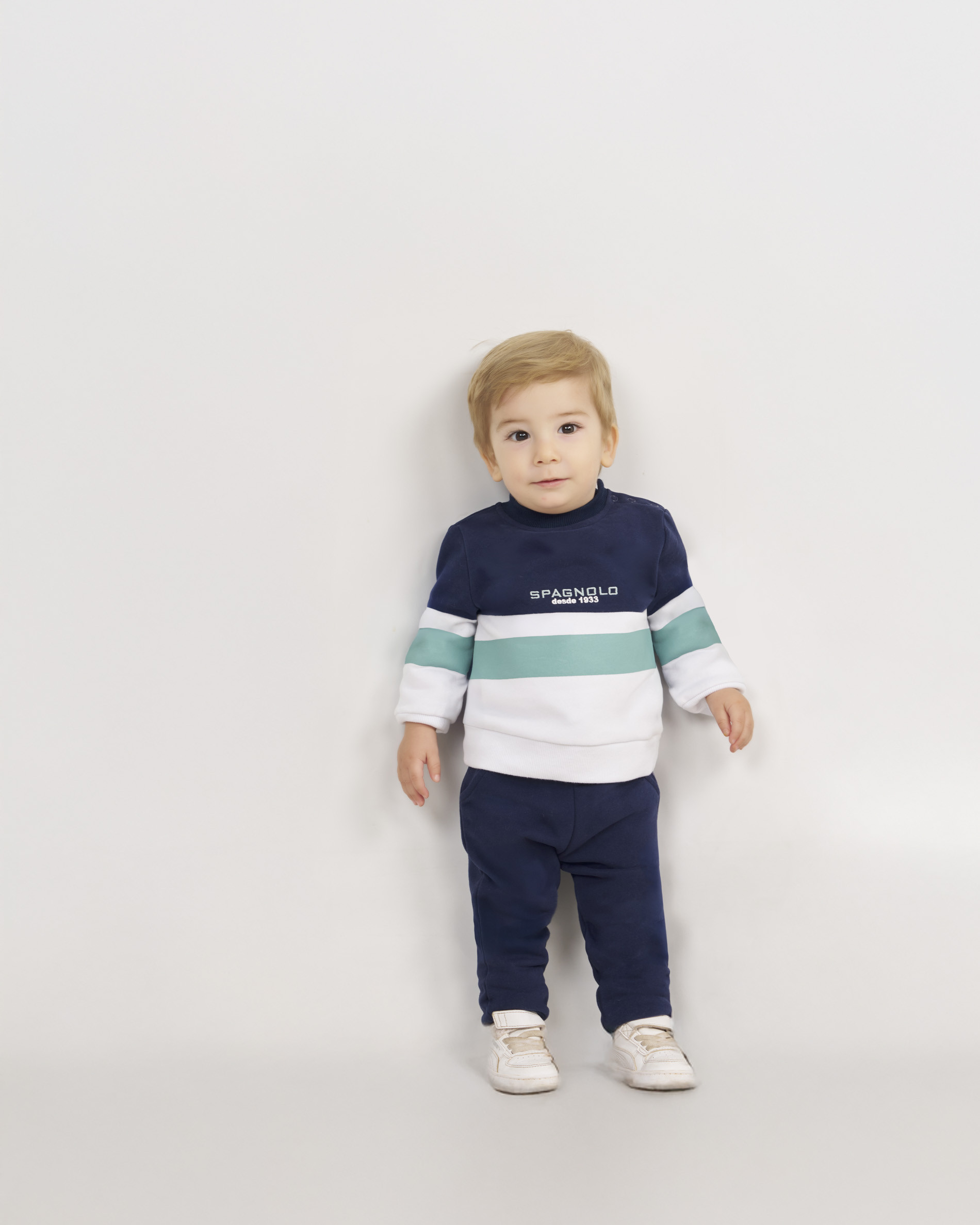 Set deportivo y moderno para niños que garantiza comodidad y calidez. Confeccionado en suave punto de felpa, la combinación de sudadera y pantalón se convierte en un conjunto esencial y versátil para todas las actividades diarias.
