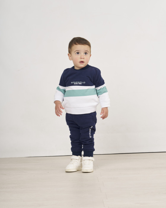 Este set es ideal para un estilo deportivo y moderno, garantizando máxima comodidad y calidez para el juego diario.Ambas piezas están confeccionadas en suave punto felpa 100% Algodón, un tejido perfecto para el confort. La sudadera combina el azul marino con bloques en blanco y turquesa, e incluye un diseño de logo. El pantalón de felpa a juego es de color azul marino oscuro y tiene un ajuste cómo