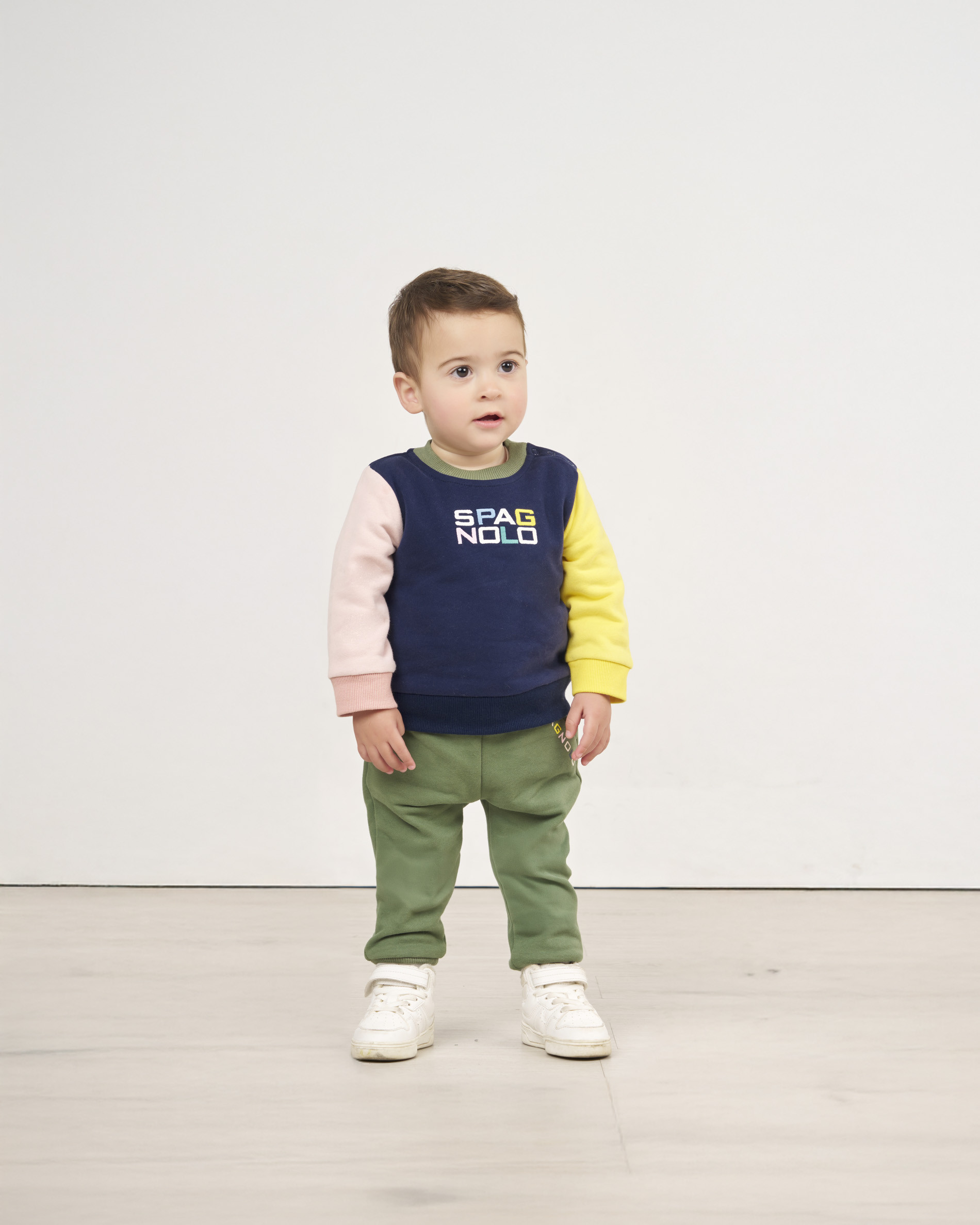 Este set ofrece máxima comodidad con un diseño moderno de bloques de color.Confeccionado en suave felpa 100% Algodón, proporciona confort y calidez. La sudadera combina el azul marino con toques de amarillo y rosa, y el pantalón de felpa en color verde oliva garantiza un ajuste cómodo y flexible.Comodidad esencial con estilo para el juego diario.