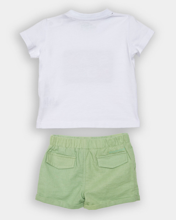 CONJUNTO CAMISETA Y BERMUDA LINO BLANCO y VERDE