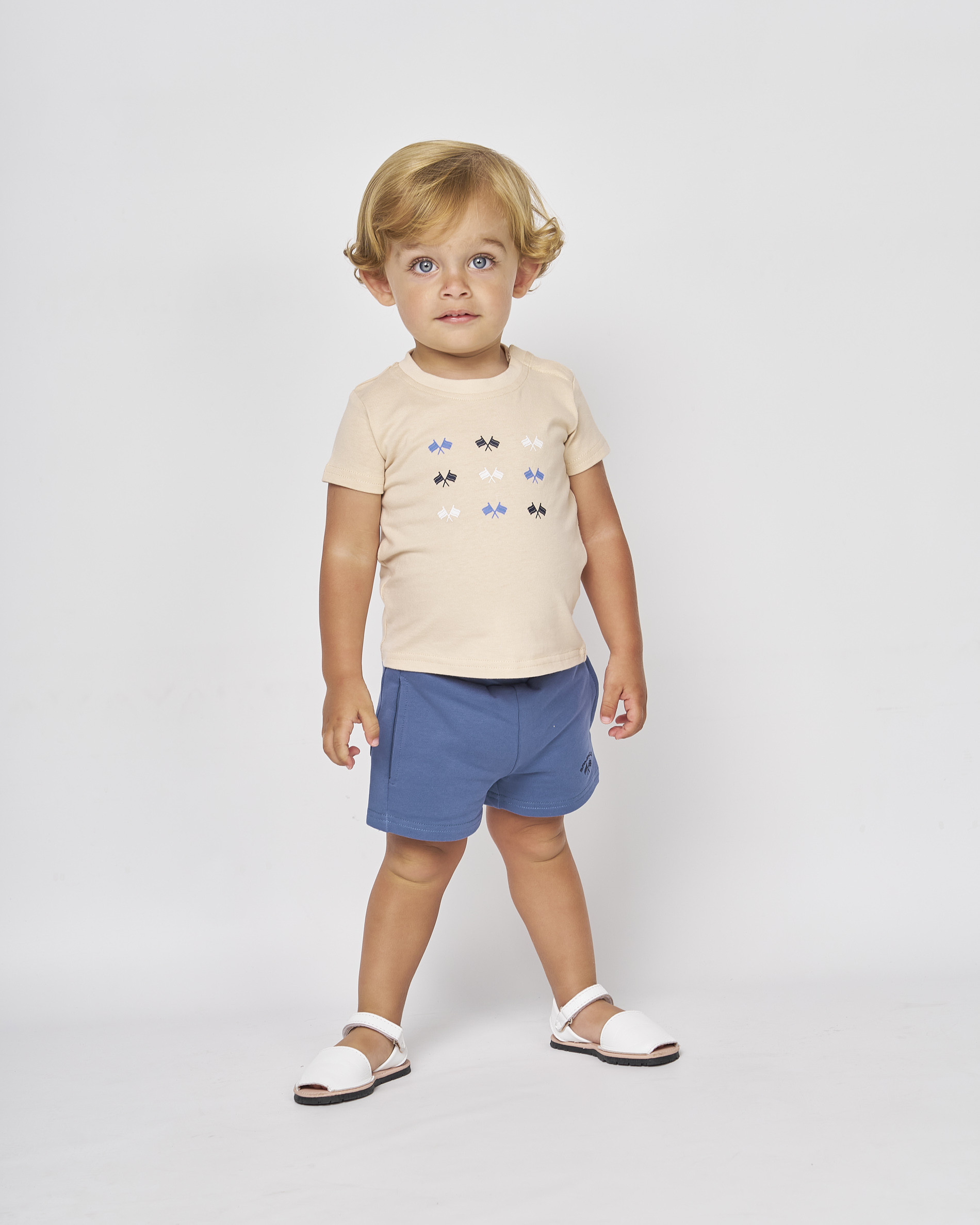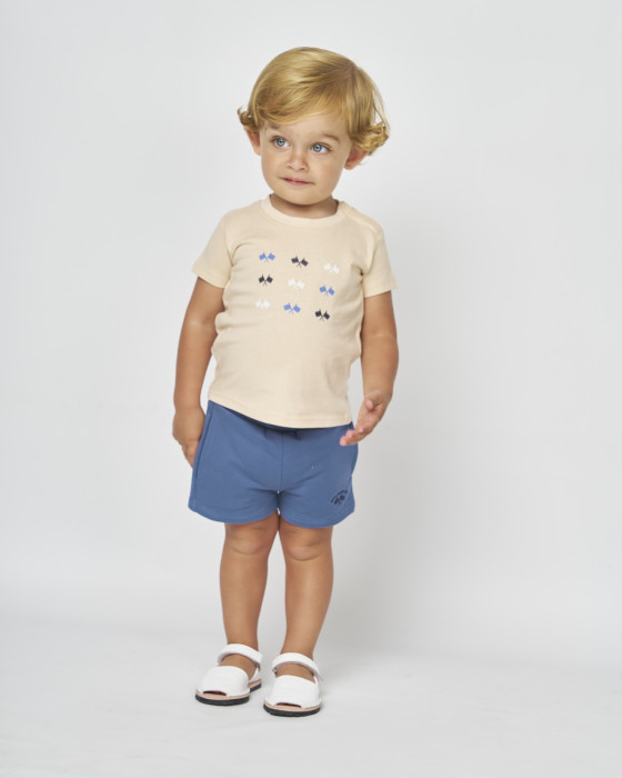 CONJUNTO CAMISETA Y BERMUDA PUNTO BEIG Y AZUL