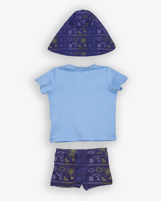 CONUNTO GORRA CAMISETA BAÑADOR AZUL