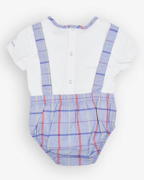 CONJUNTO CAMISETA Y PETO BLANCO Y AZUL