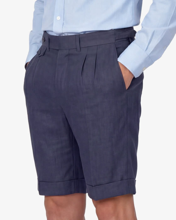 BERMUDA LINO PINZAS AZUL TINTA