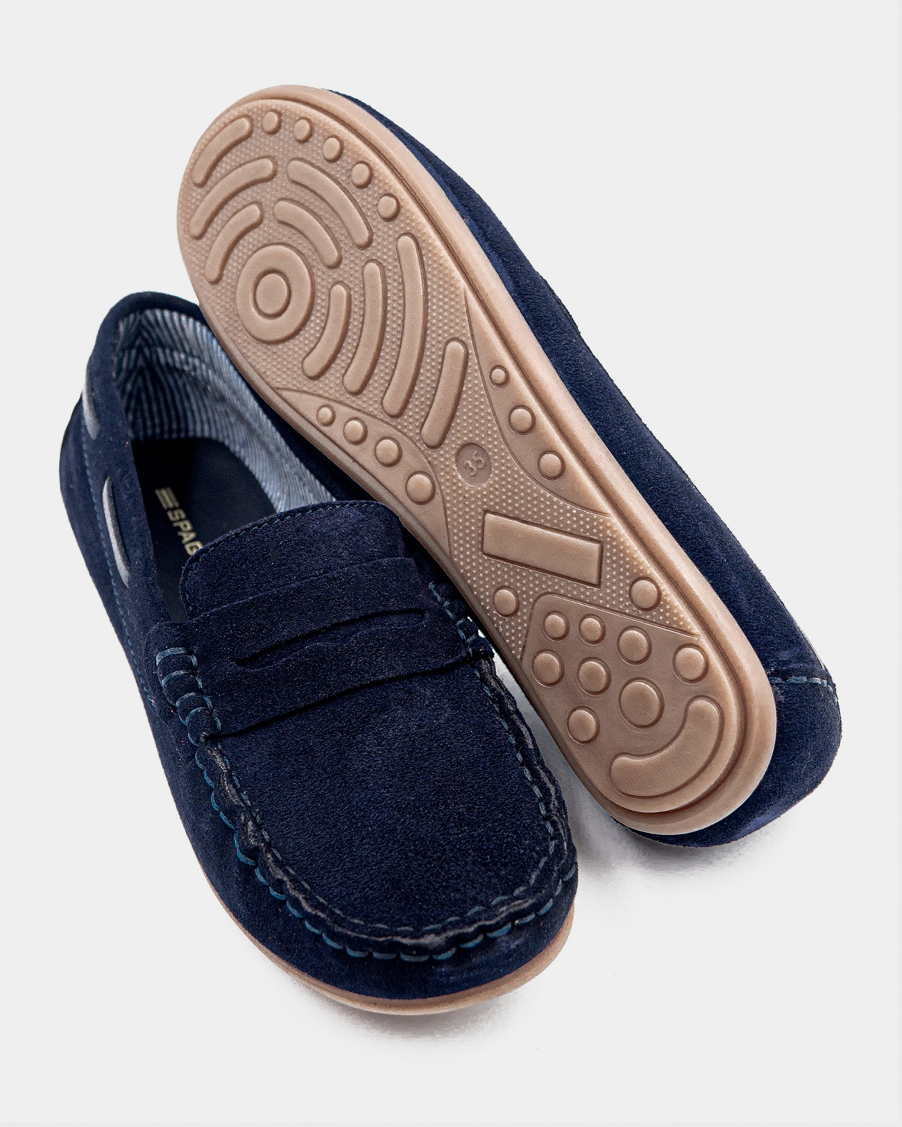 Mocasín de Spagnolo confeccionado en serraje de alta calidad. Diseño clásico con antifaz que aporta un estilo elegante y atemporal. Acabado suave y flexible para una pisada cómoda. Ideal para looks casuales o más arreglados. Fácil de combinar en el día a día. Disponible en azul marino y camel.
