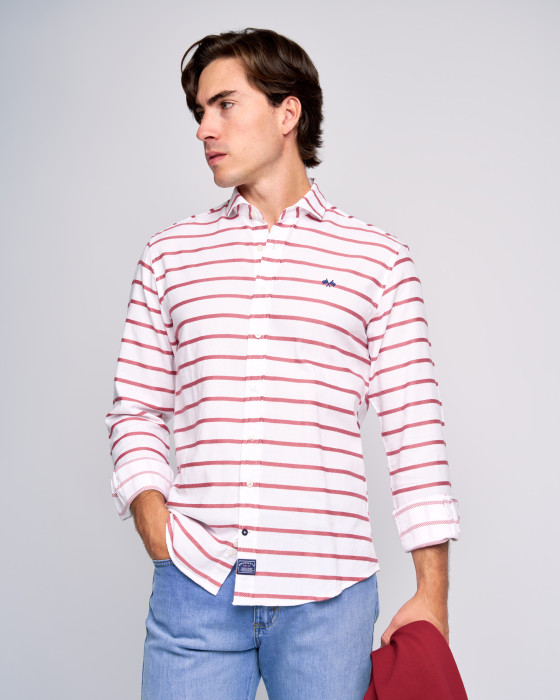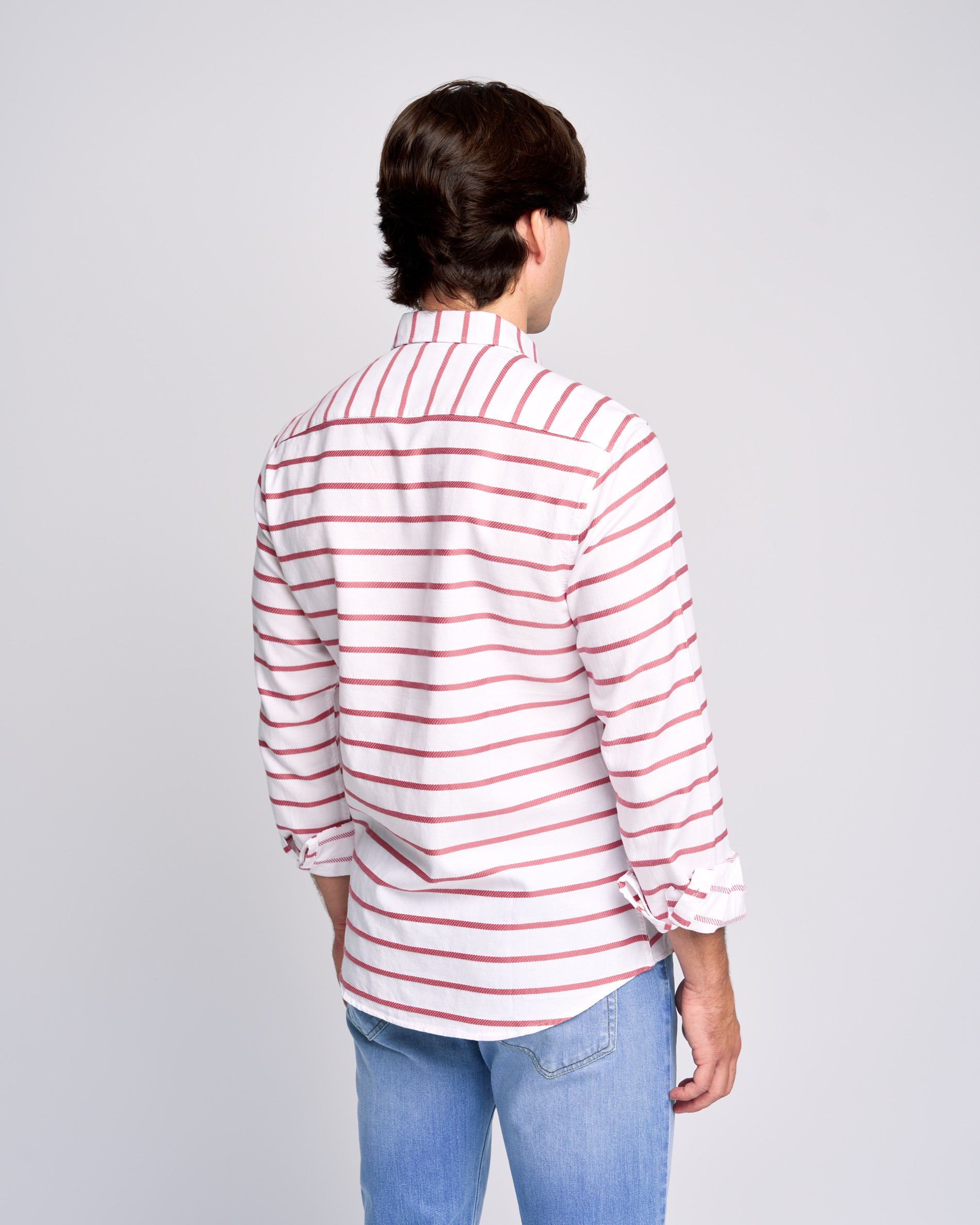 CAMISA OXFORD LISTAS BLANCO y GRANATE