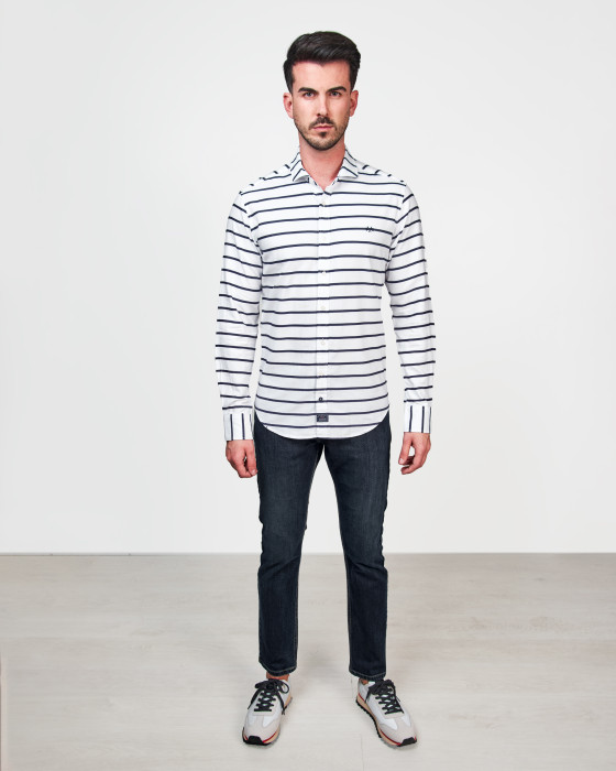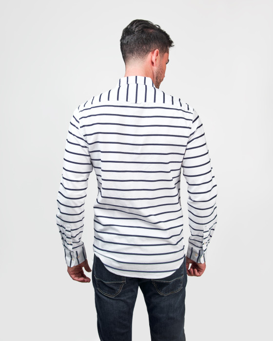 CAMISA OXFORD LISTAS BLANCO y AZUL MARINO