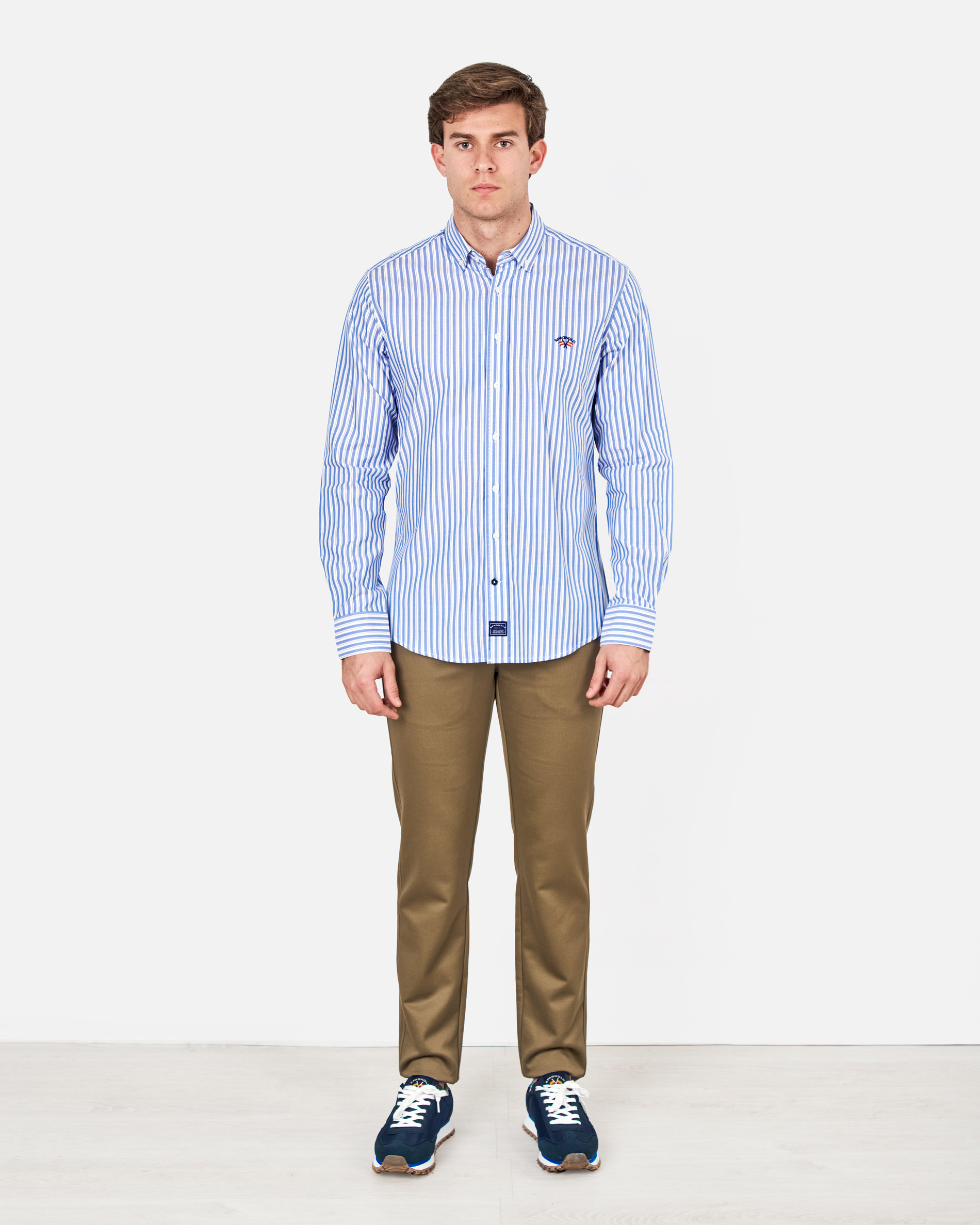 CAMISA C/BOTON OXFORD LISTAS 0025 AZUL