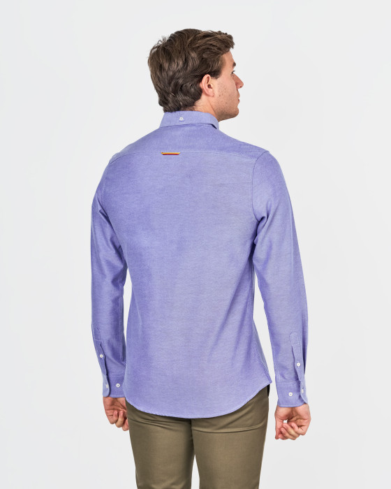 La elección perfecta para un look casual y atemporal. Esta camisa de manga larga está confeccionada en tejido Oxford liso, una mezcla de 60% algodón y 40% poliéster que ofrece durabilidad y un tacto confortable, además de ser fácil de planchar. El cuello con botón aporta un aire clásico y pulido, ideal para el día a día. Destaca por el bordado a contraste del escudo en el pecho, un detalle que le