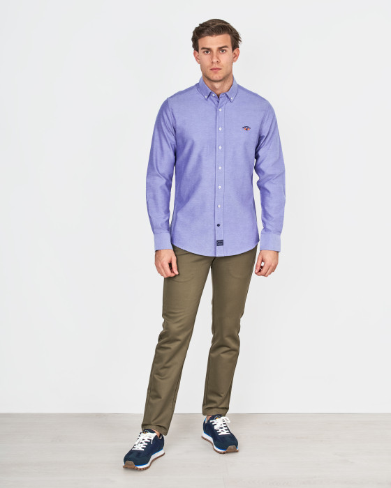 CAMISA C/BOTON OXFORD LISO 0025 AZUL