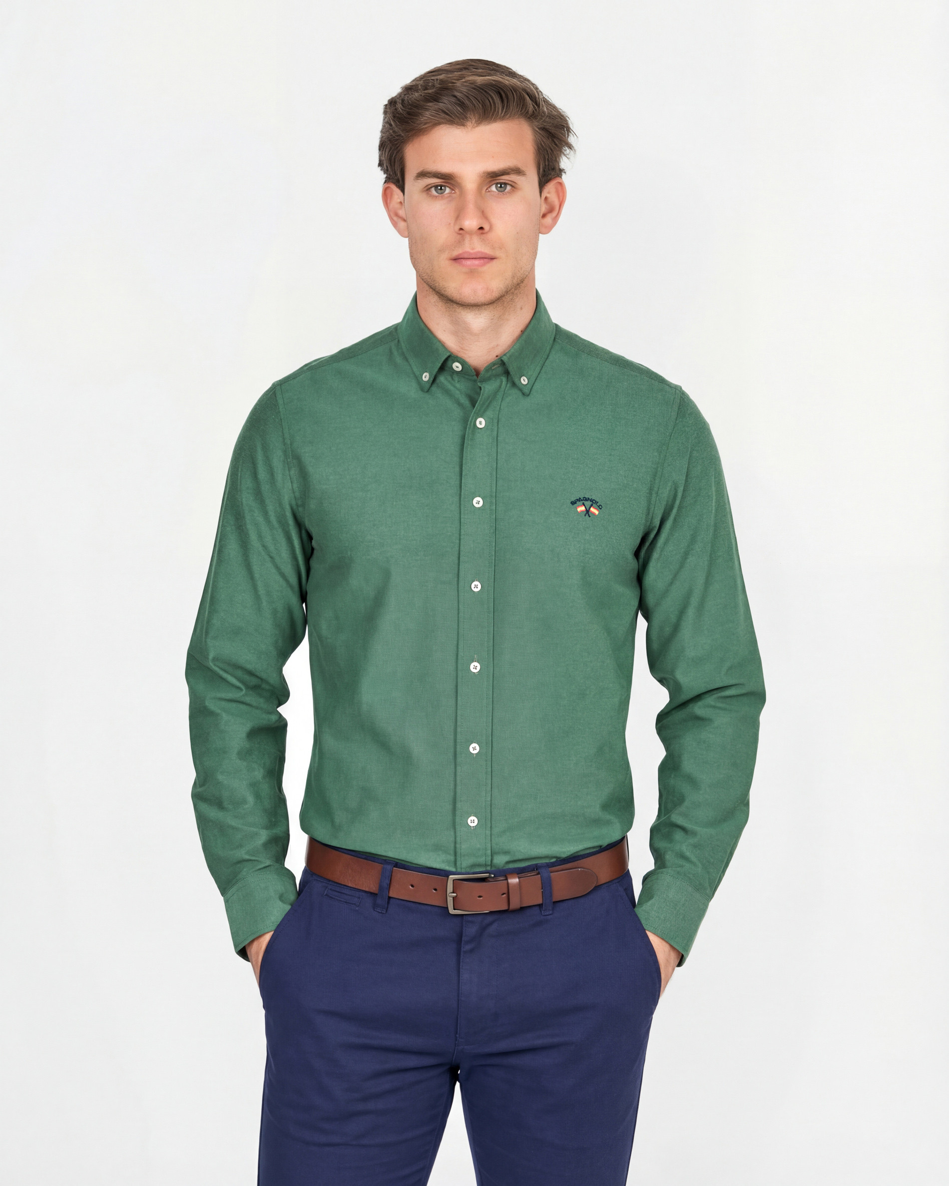 CAMISA C/BOTON OXFORD LISO 0025 VERDE