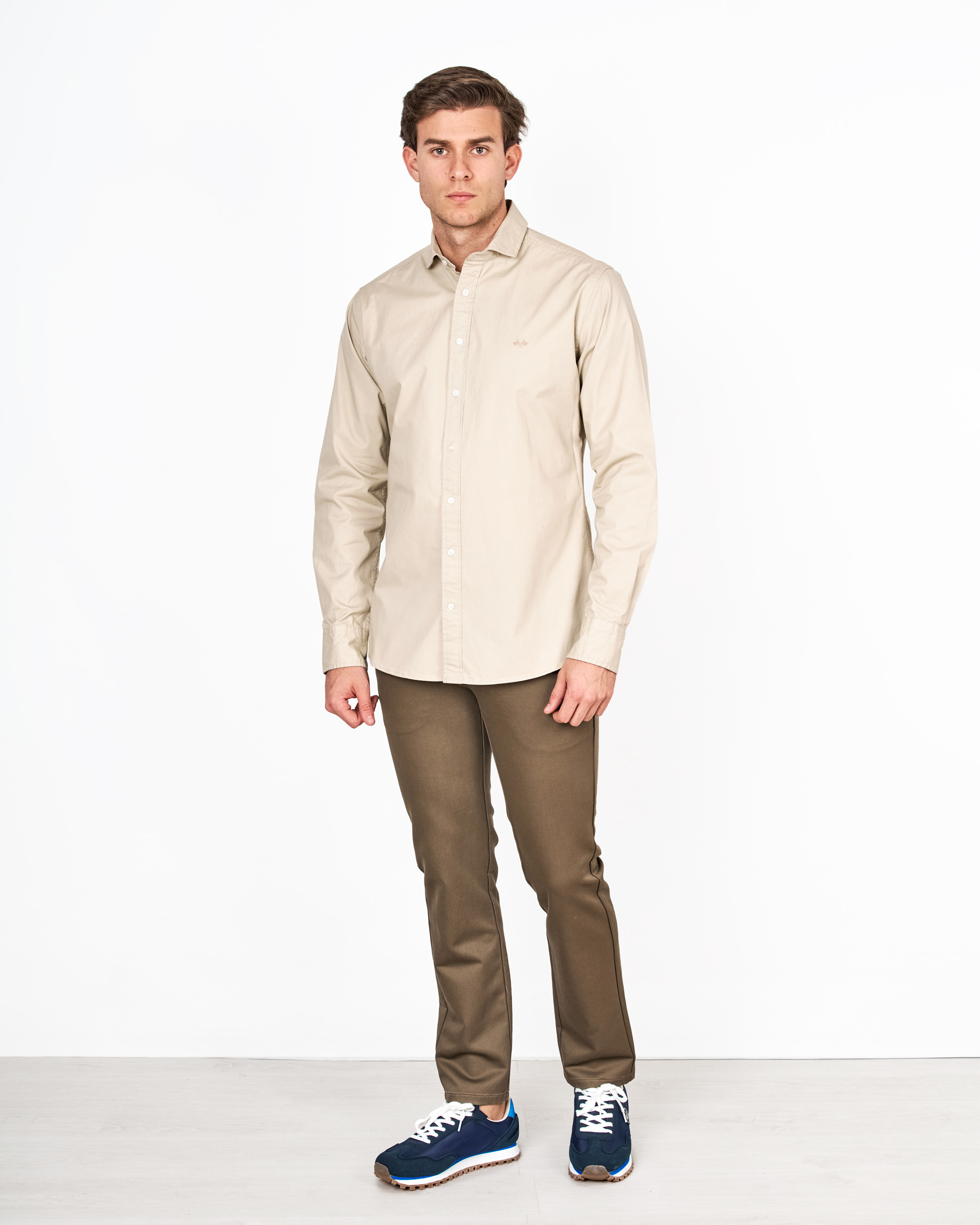 Experimenta el confort y la elegancia con nuestra camisa de gabardina de manga larga. Su corte entallado se adapta perfectamente a tu figura, realzando tu estilo. Confeccionada en gabardina 100% algodón, ofrece un tacto suave y una transpirabilidad óptima. El cuello cutaway le da un toque moderno y distintivo, ideal para cualquier ocasión. El discreto logo bordado en el pecho añade un detalle de s
