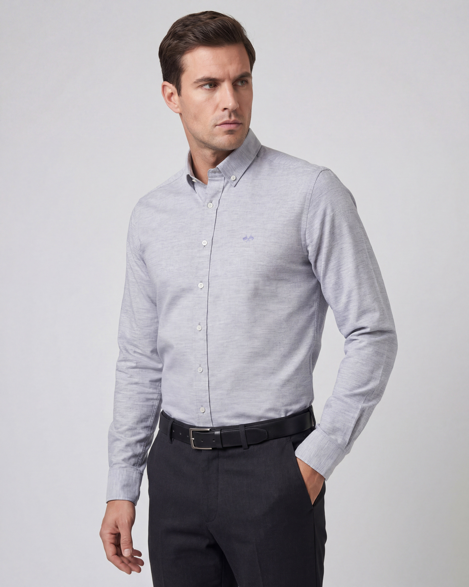 Descubre la esencia del estilo casual con nuestra camisa de corte regular. Confeccionada en gabardina 100% algodón, te ofrece una comodidad inigualable y un tacto suave para tu día a día. El diseño atemporal y el discreto logo bordado en el pecho la convierten en una prenda versátil, perfecta para un look impecable. Su cuello con botón y puños ajustables garantizan un acabado pulido. La calidad su