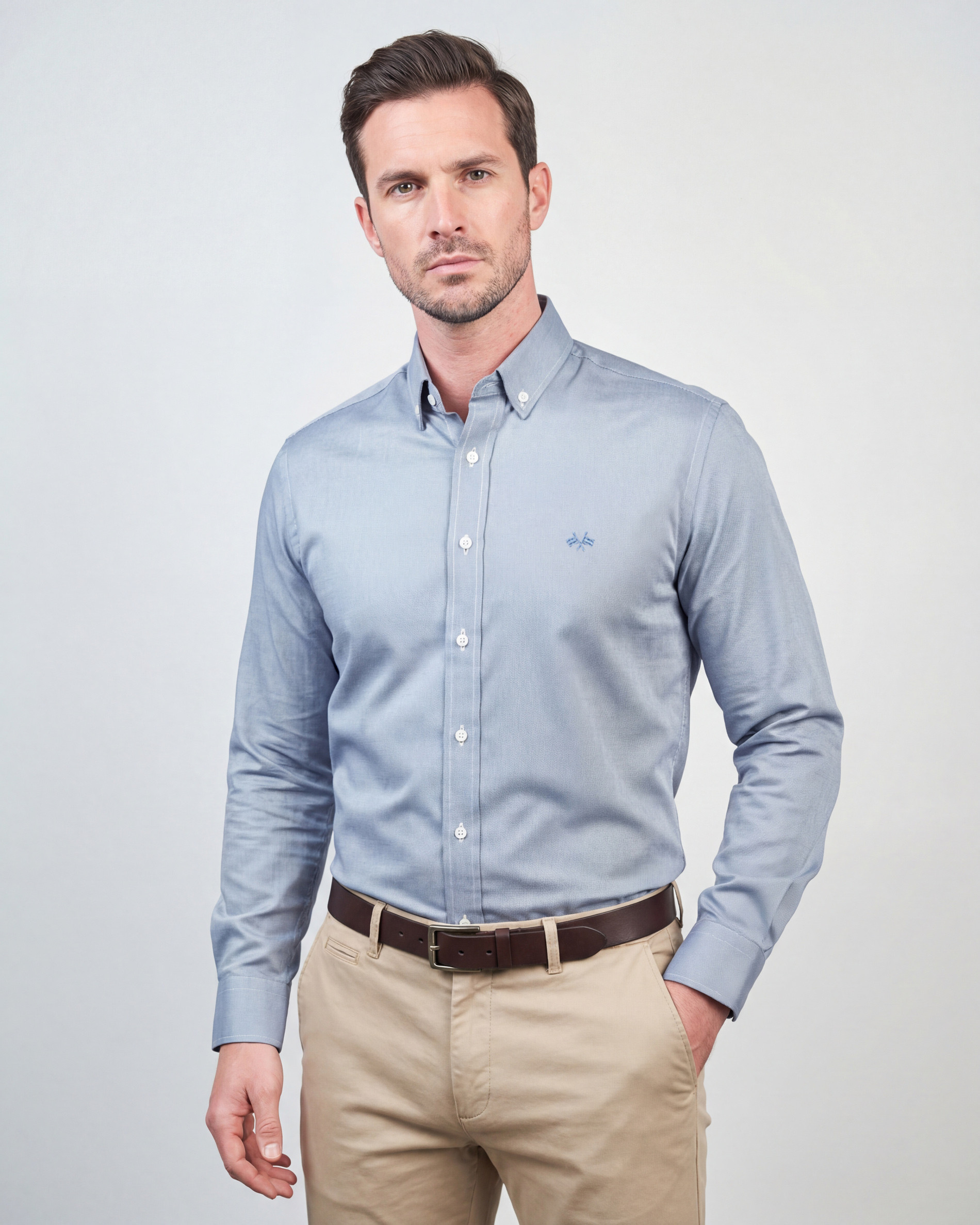 Un pilar de estilo y calidad premium. Esta camisa de manga larga está confeccionada en Piqué Oxford liso 100% algodón, ofreciendo una textura rica, transpirable y un tacto suave. Su diseño es perfecto para combinar tanto en el trabajo como en el ocio. Un clásico atemporal con cuello button-down que garantiza una apariencia distinguida y la máxima comodidad.