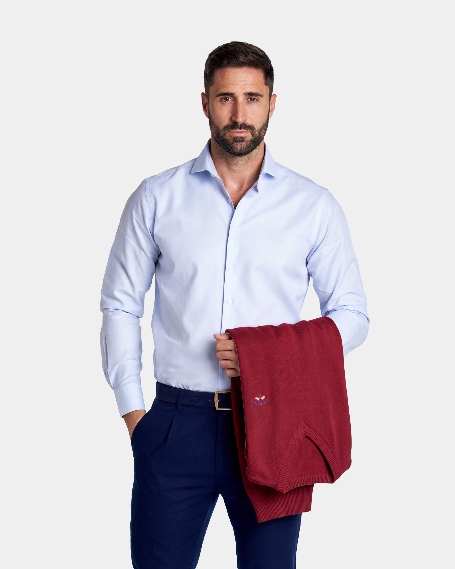 Combina elegancia y rendimiento. Confeccionada en tejido dobby de 100% algodón, ofrece una textura sutil y un confort superior. Ideal para looks de oficina o eventos. Un básico imprescindible de corte impecable que te garantiza un estilo smart