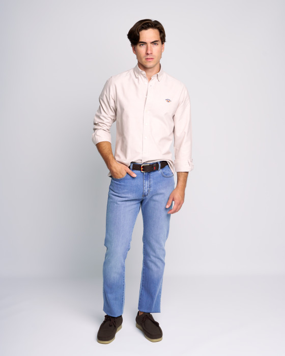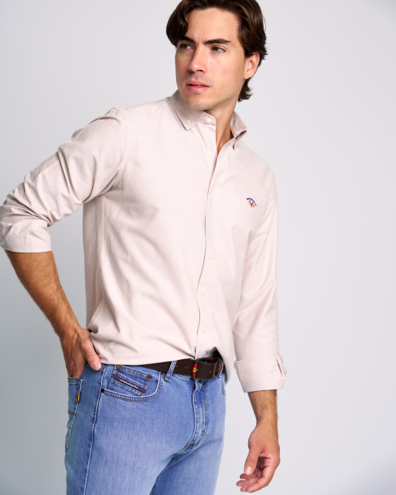 CAMISA C/BOTON OXFORD LISO 0025 BEIGE