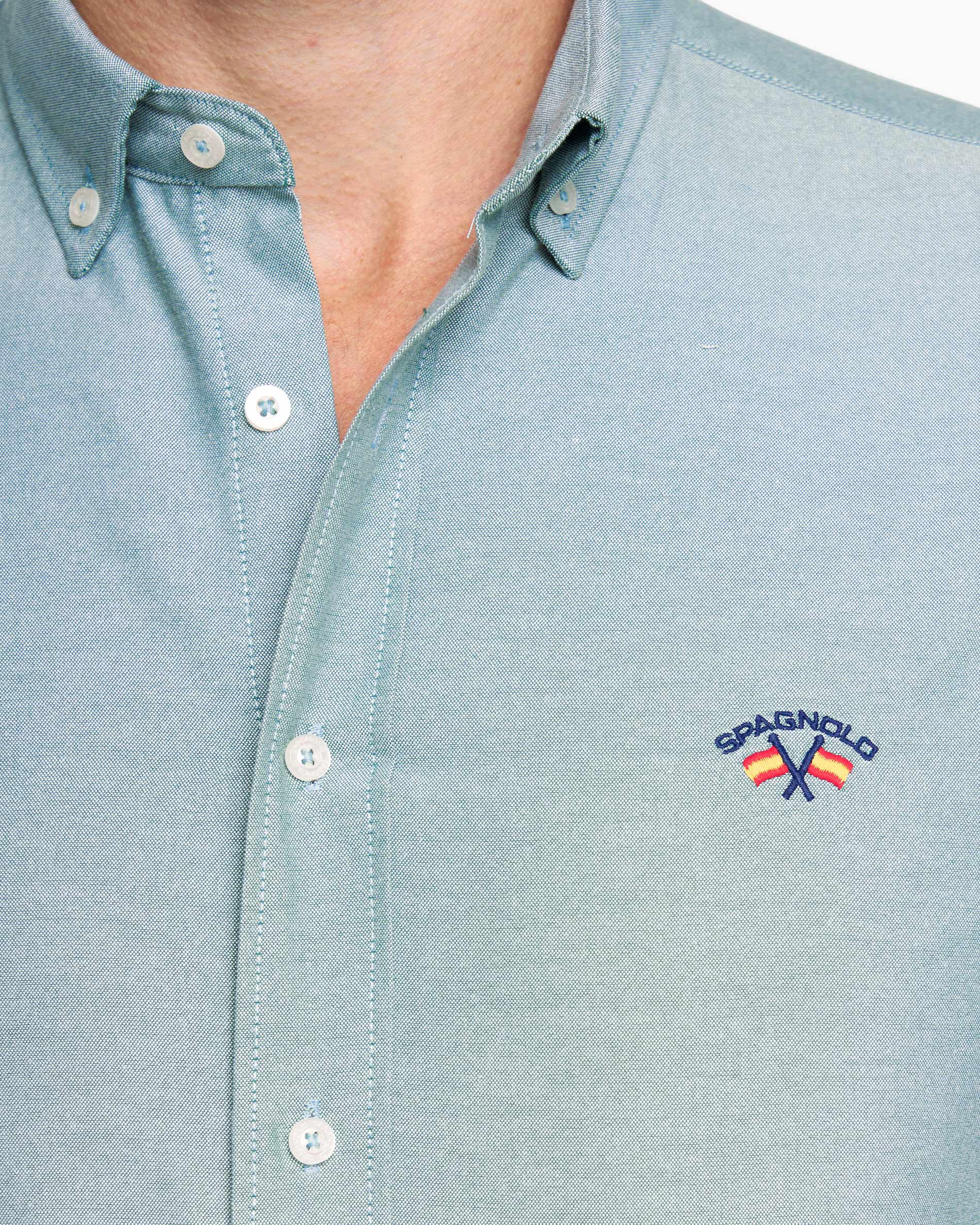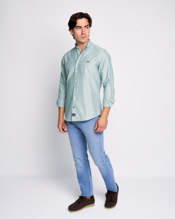 La elección perfecta para un look casual y atemporal. Esta camisa de manga larga está confeccionada en tejido Oxford liso, una mezcla de 60% algodón y 40% poliéster que ofrece durabilidad y un tacto confortable, además de ser fácil de planchar. El cuello con botón aporta un aire clásico y pulido, ideal para el día a día. Destaca por el bordado a contraste del escudo en el pecho, un detalle que le