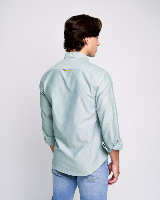 La elección perfecta para un look casual y atemporal. Esta camisa de manga larga está confeccionada en tejido Oxford liso, una mezcla de 60% algodón y 40% poliéster que ofrece durabilidad y un tacto confortable, además de ser fácil de planchar. El cuello con botón aporta un aire clásico y pulido, ideal para el día a día. Destaca por el bordado a contraste del escudo en el pecho, un detalle que le