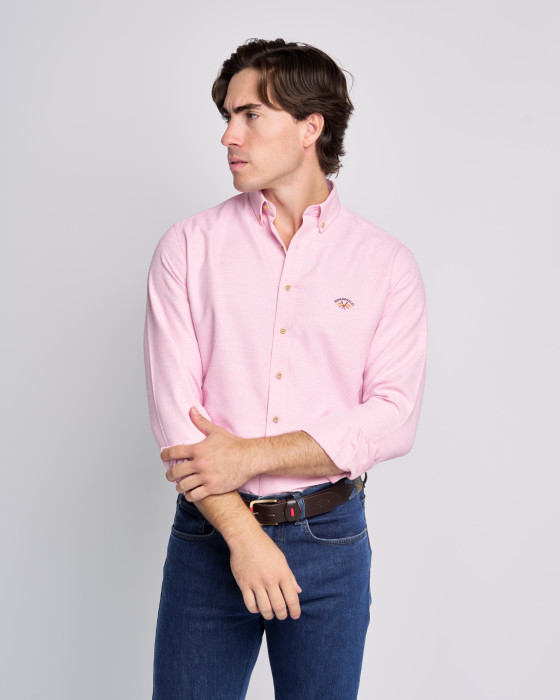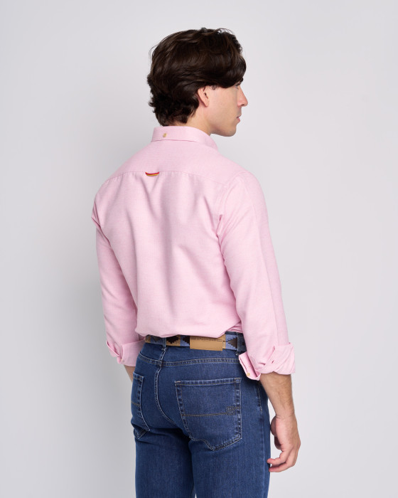 CAMISA RUSTICO BLANCO y CORAL INTENSO