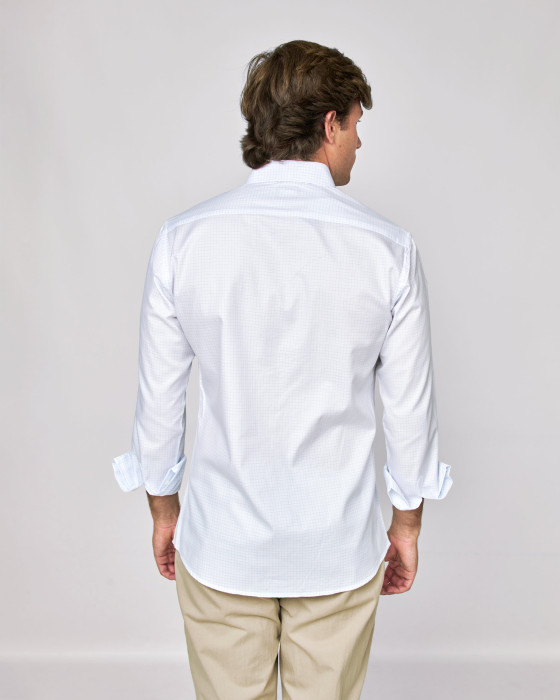 CAMISA POPELIN CUADROS BLANCO y CELESTE HIELO