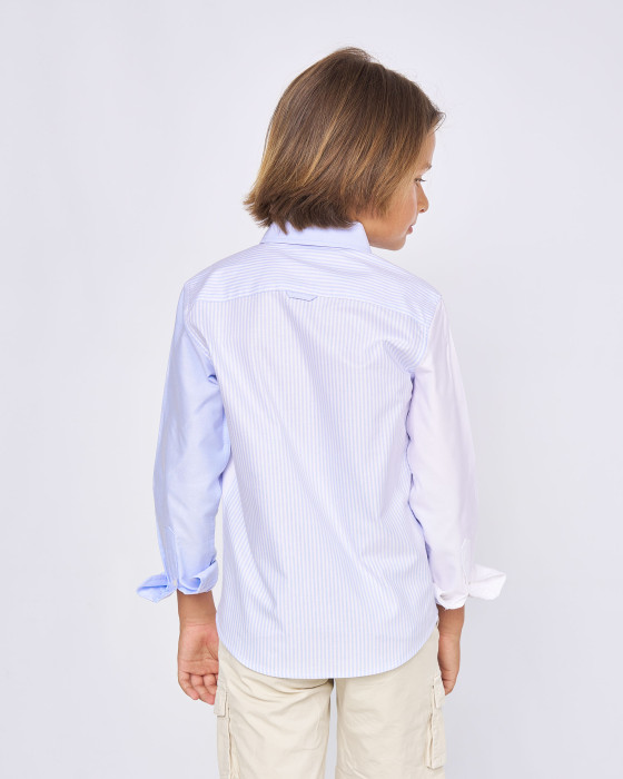 CAMISA OXFORD COMBI LISTAS BLANCO y CELESTE HIELO