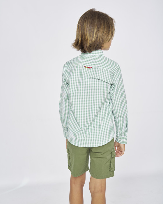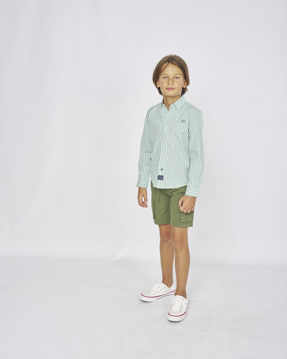 CAMISA C/BOTON POPELIN CUADROS VERDE AGUA
