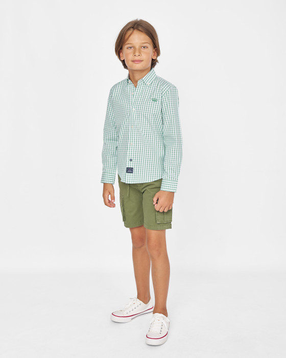 CAMISA C/BOTON POPELIN CUADROS VERDE AGUA
