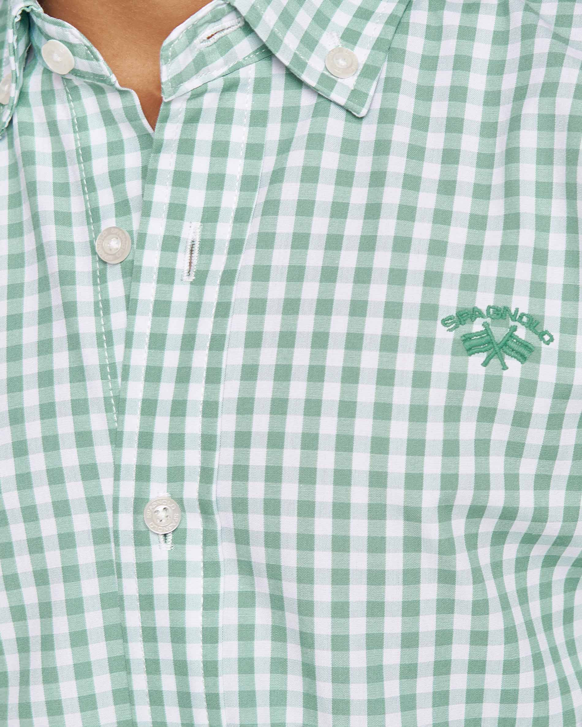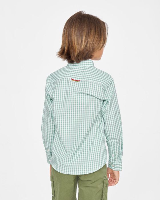 Camisa infantil de Spagnolo con diseño de cuadros vichy disponible en azul y verde.