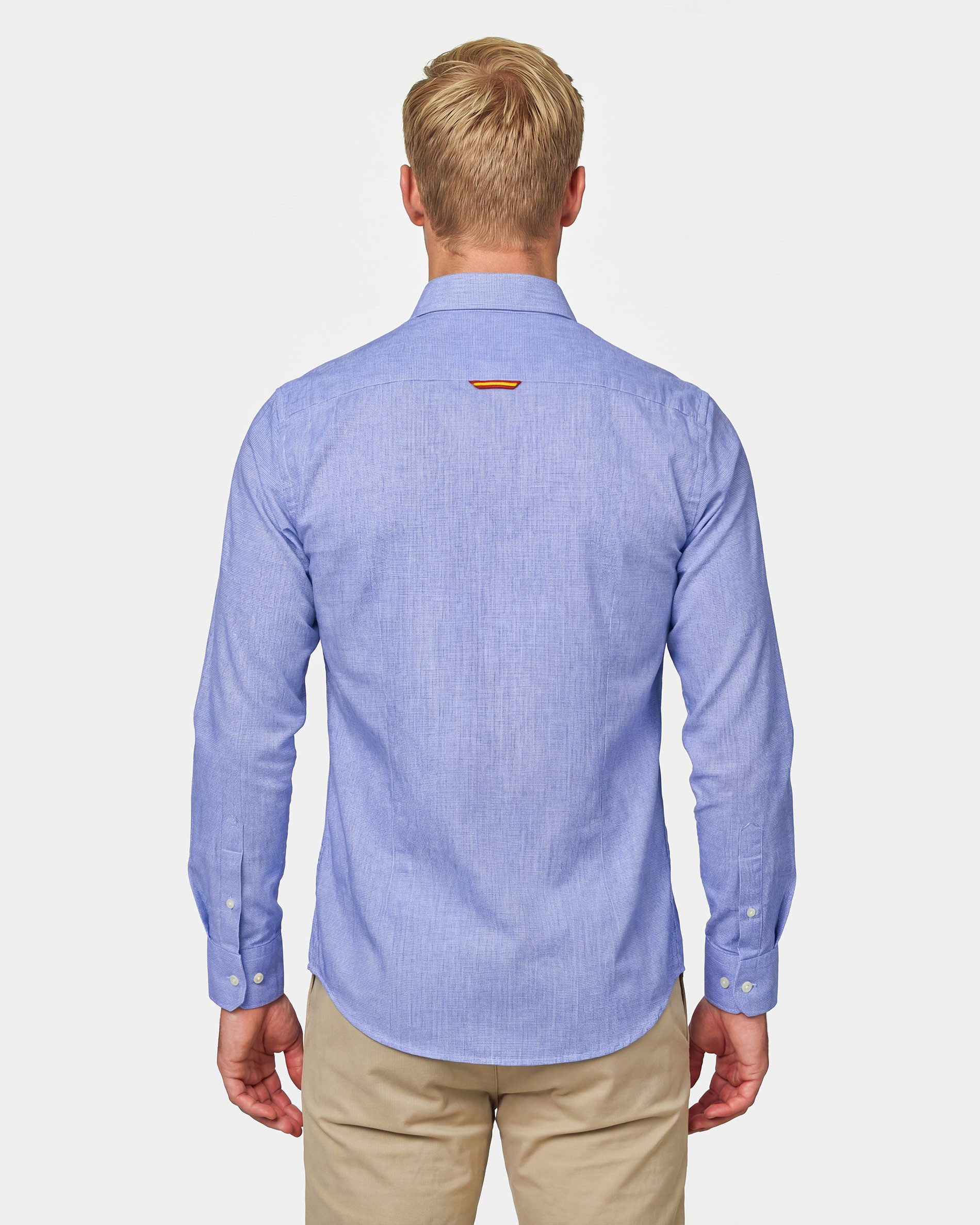 Camisa de hombre confeccionada en tejido Fil a Fil 100% algodón, que aporta suavidad, transpirabilidad y un acabado elegante. Presenta cuello con botón que mantiene una forma impecable durante todo el día. Su diseño clásico en color blanco la convierte en una prenda versátil, ideal tanto para looks formales como casuales. Incluye detalle de bandera de España bordada, aportando un toque distintivo y exclusivo.
