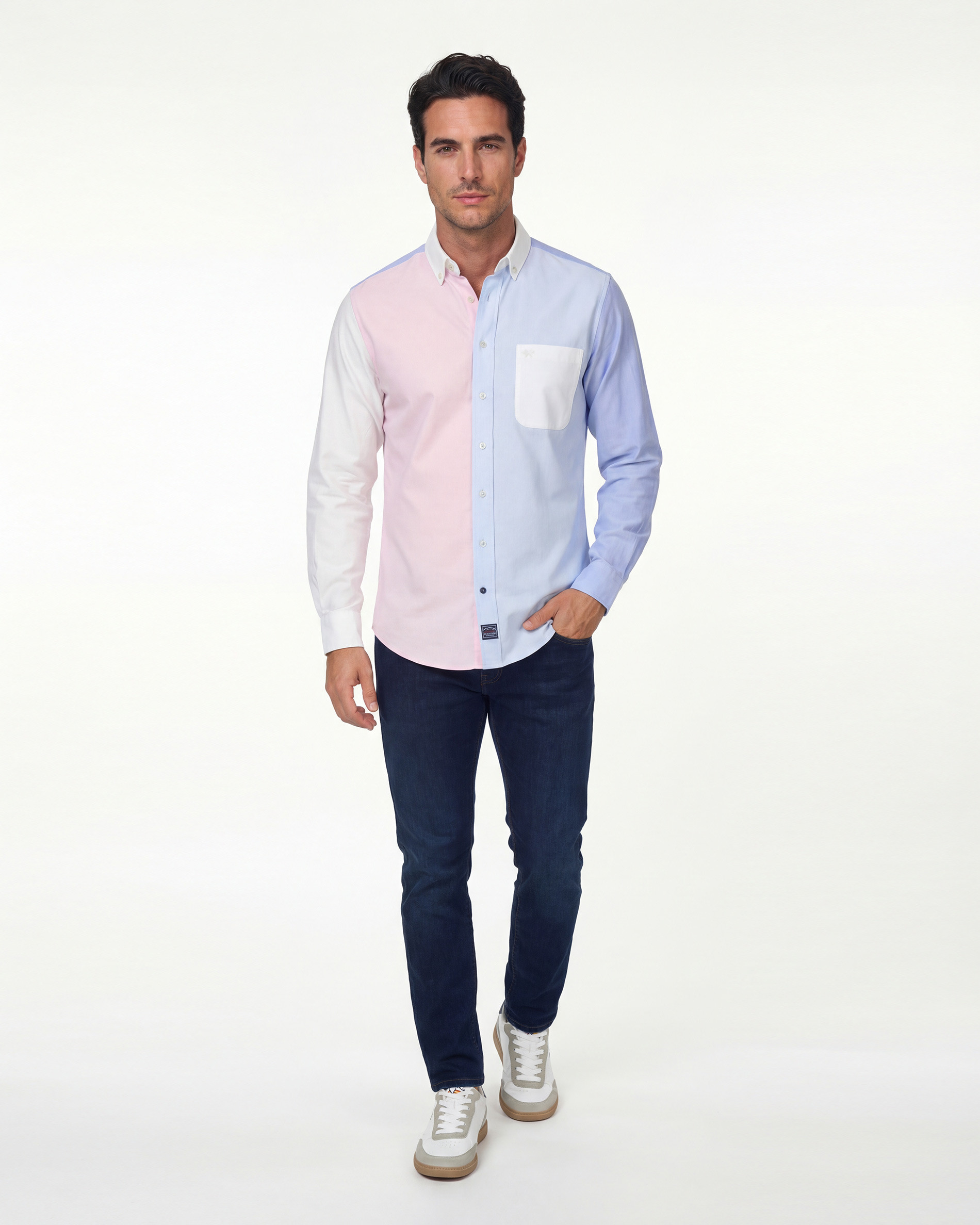 CAMISA OXFORD COMBI LISO MULTICOLOR CELESTE