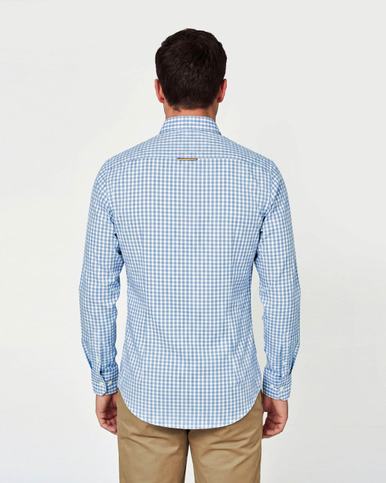 CAMISA POPELIN CUADROS CELESTE