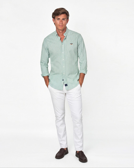 CAMISA POPELIN CUADROS VERDE AGUA