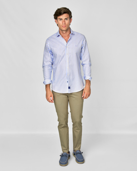 CAMISA OXFORD RAYAS MULTICOLOR CELESTE