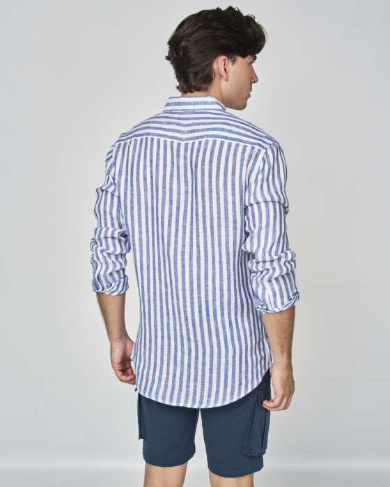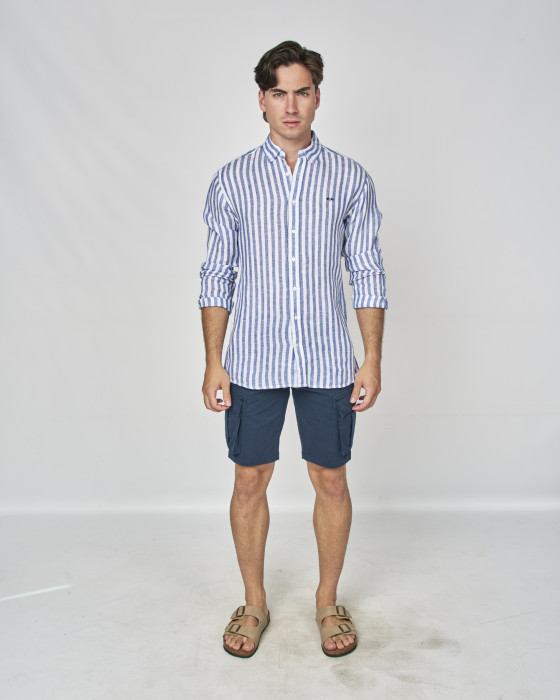 CAMISA LINO RAYAS BLANCO y AZUL TINTA