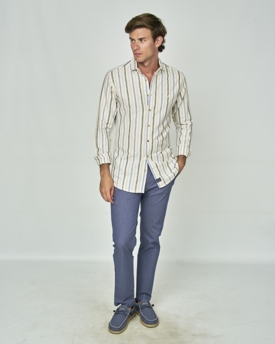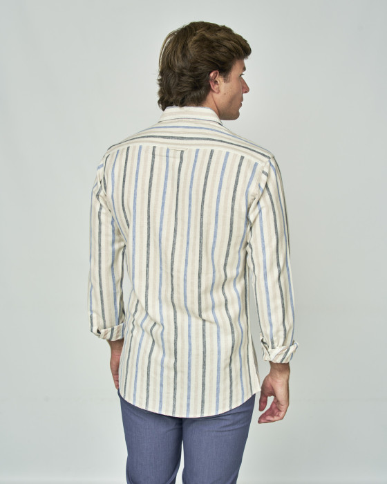 CAMISA RUSTICO RAYAS MULTICOLOR BEIGE