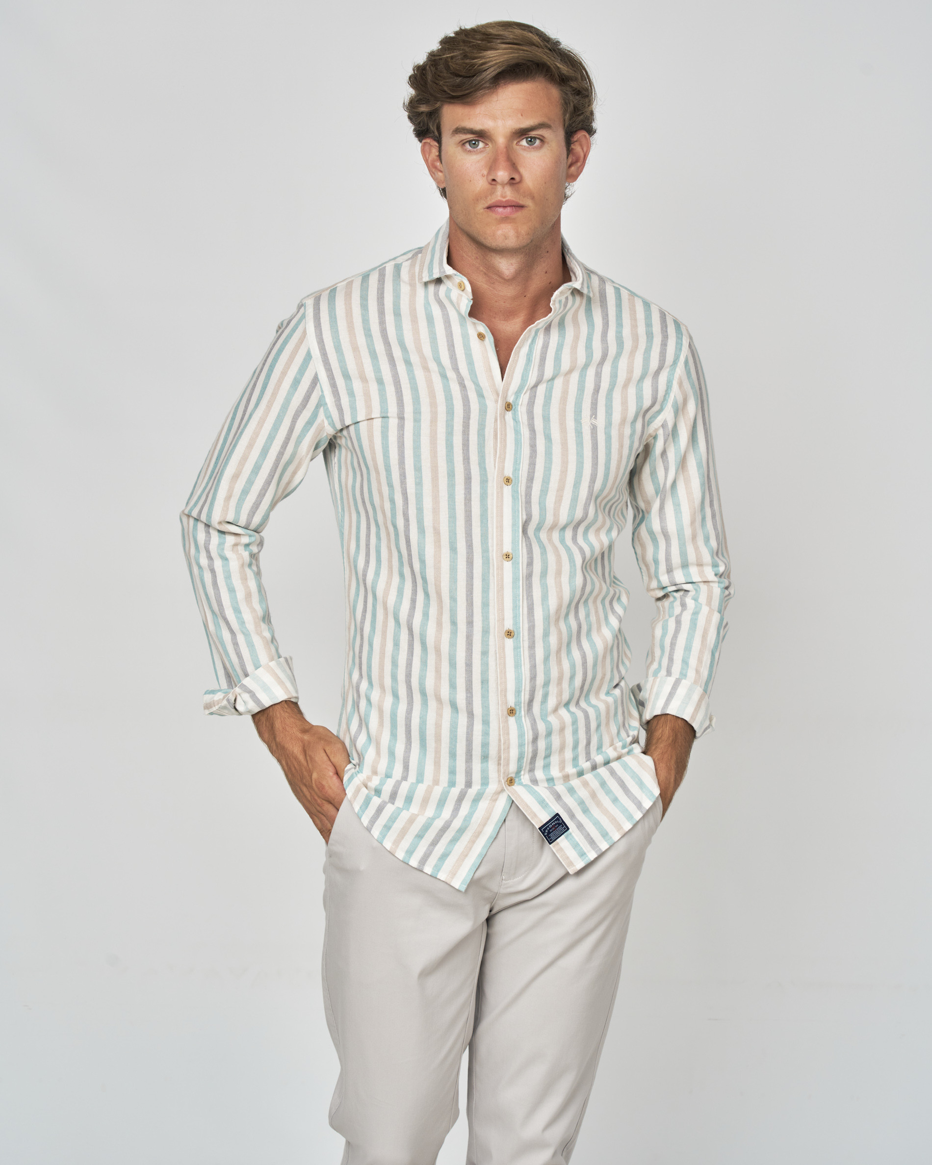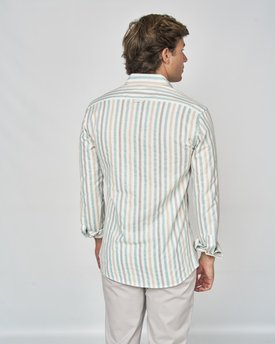 CAMISA RUSTICO RAYAS MULTICOLOR BEIGE