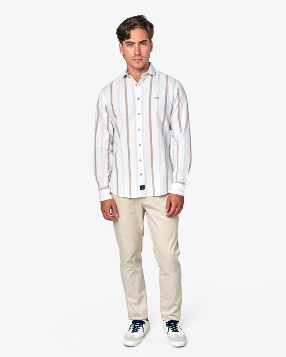 CAMISA RUSTICO RAYAS MULTICOLOR BLANCA