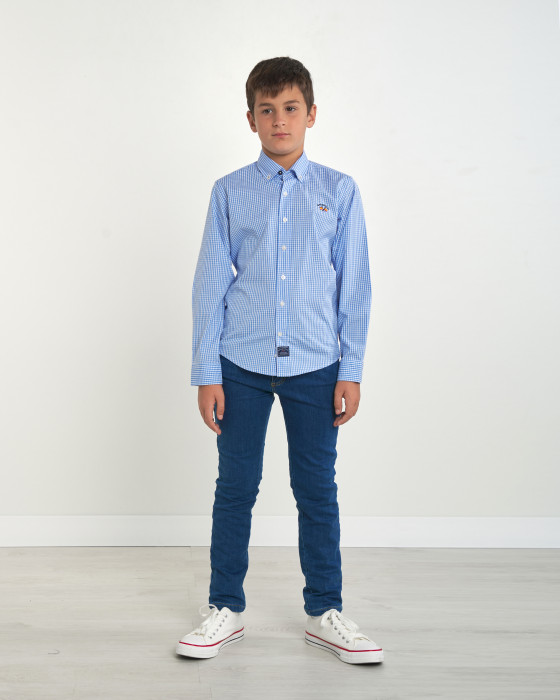 CAMISA POPELIN CUADROS AZUL