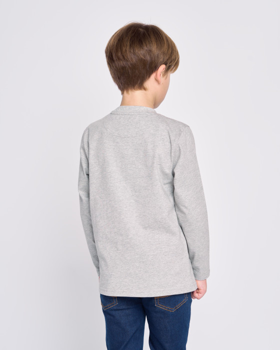 Camiseta versátil de cuello redondo y manga larga para niño. Ideal para el día a día. Diseño cómodo y suave al tacto que garantiza la libertad de movimiento. Presenta un logo moderno a la altura del pecho. ¡Un básico perfecto para la temporada!