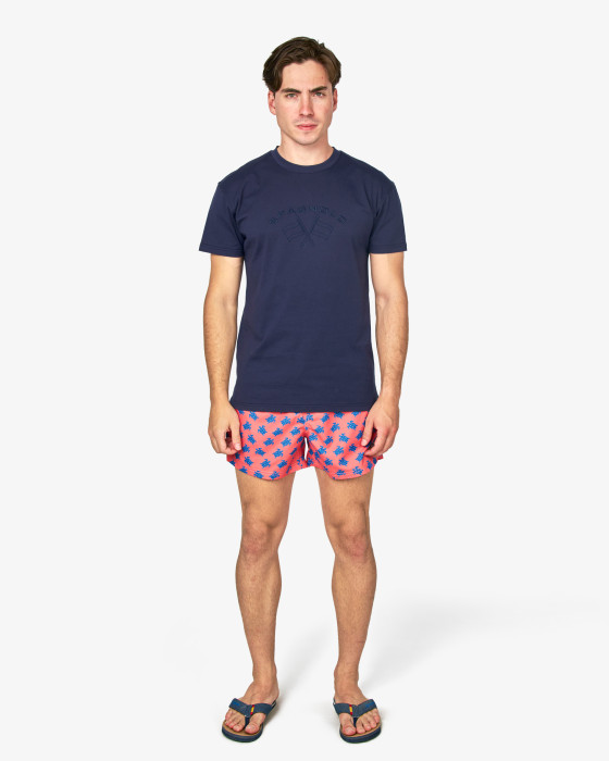 Añade un toque vibrante y cosmopolita a tu día a día con esta camiseta de banderas Spagnolo, la prenda ideal para quienes buscan un estilo relajado con identidad propia. Confeccionada en un punto de algodón premium de tacto suave, ofrece una comodidad excepcional y una gran durabilidad lavado tras lavado. El diseño destaca por su icónico motivo de banderas en el pecho, aportando un aire náutico y