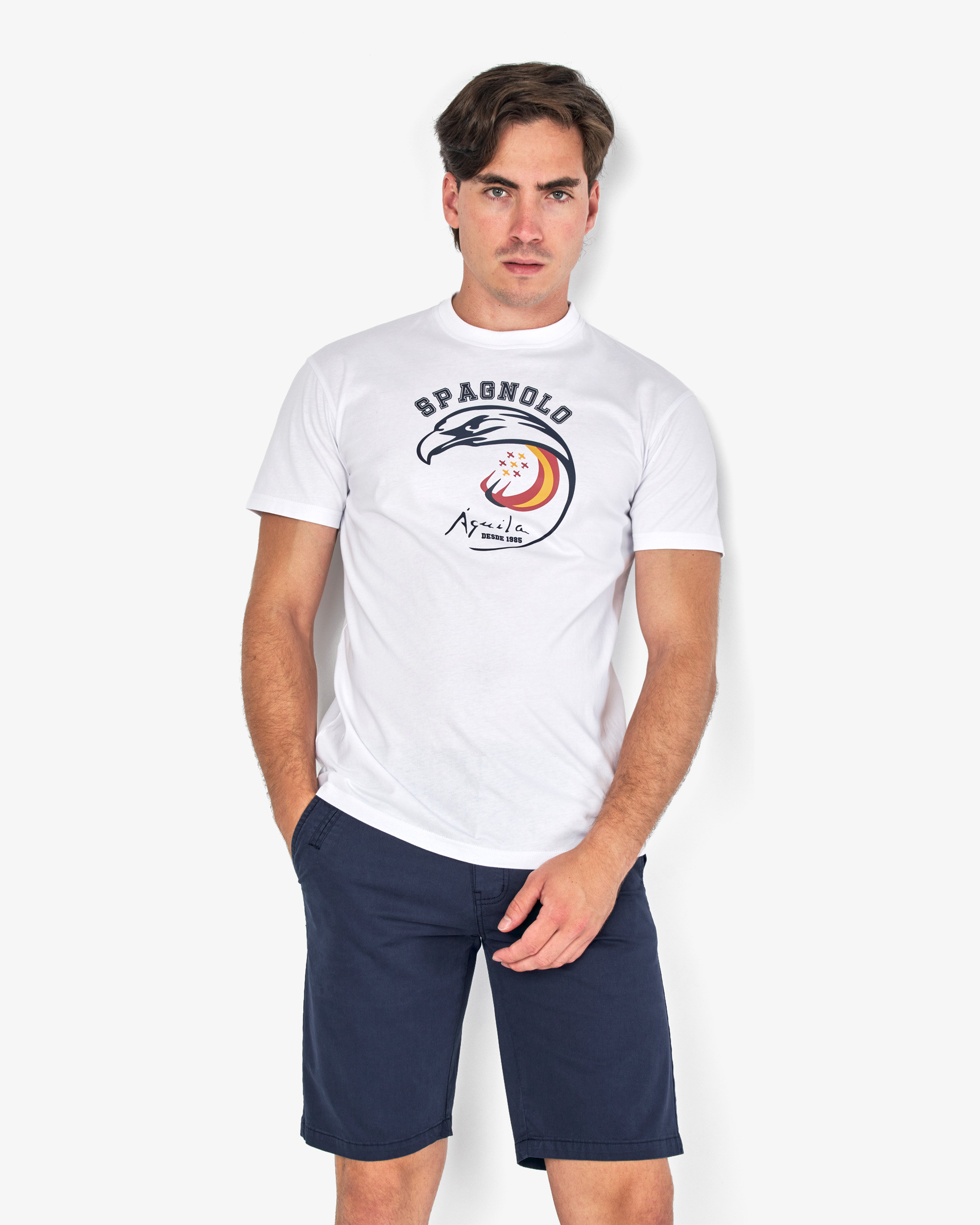 <p>La camiseta Spagnolo con diseño de la Patrulla Águila en el pecho es la prenda definitiva para quienes buscan un estilo casual con carácter histórico. Confeccionada en algodón premium, destaca por su gráfico detallado que rinde homenaje a la excelencia de la acrobacia aérea española. </p>