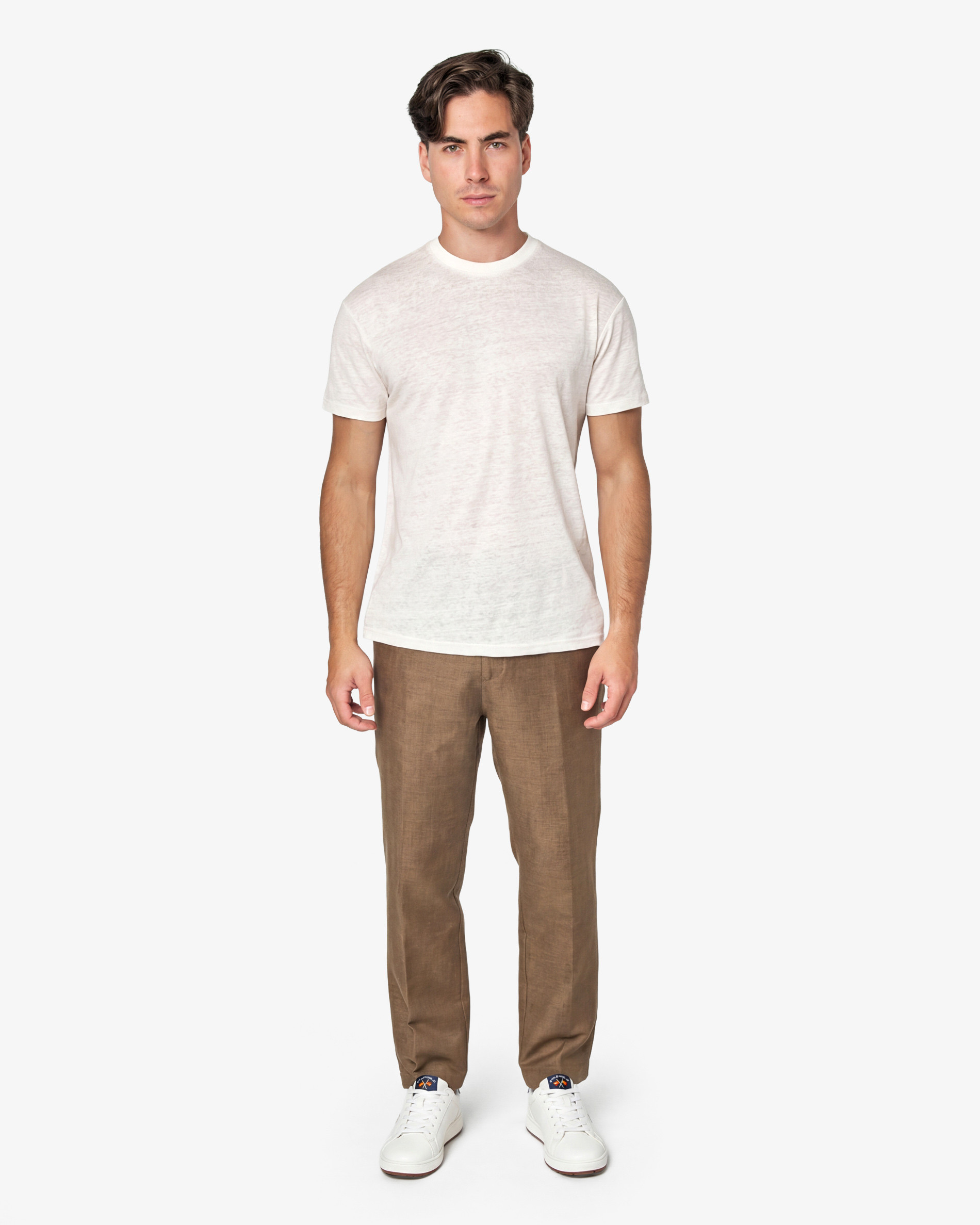 Eleva tus básicos con la camiseta de lino lisa de Spagnolo, diseñada para ofrecer la máxima transpirabilidad. Su tejido de fibras naturales aporta una textura ligera y un estilo rústico sofisticado que mejora con el tiempo. Con un corte moderno y cuello redondo, se adapta a looks de playa o cenas casuales. Disponible en colores esenciales que reflejan la elegancia relajada del Mediterráneo.