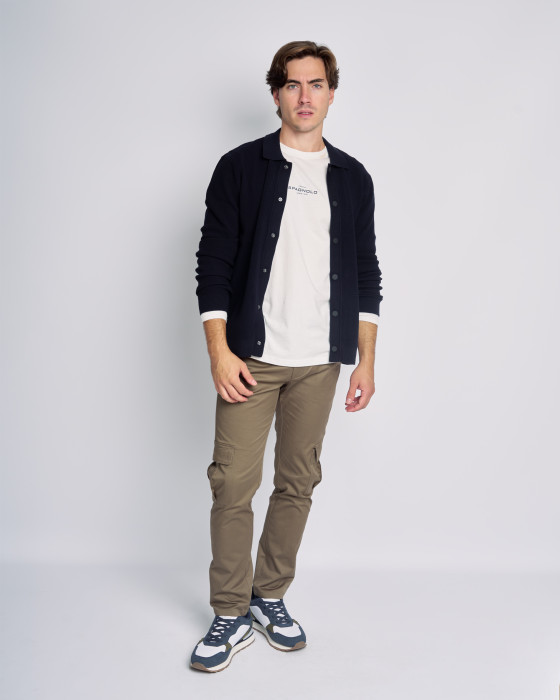 Prenda de punto liso ideal para vestir a capas. Diseñado para una caída suave y un confort excepcional. Cuenta con un elegante cuello tipo polo y cierre de botones. Estilo versátil, perfecto para cualquier ocasión semiformal o casual.