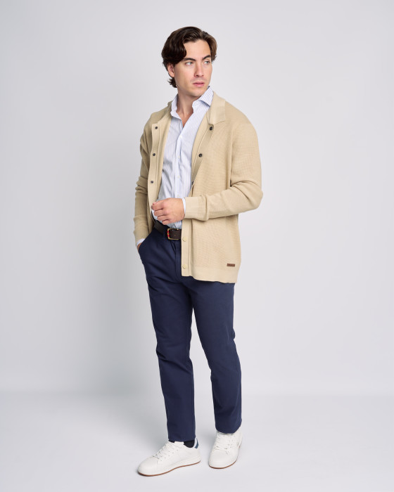 Prenda de punto liso ideal para vestir a capas. Diseñado para una caída suave y un confort excepcional. Cuenta con un elegante cuello tipo polo y cierre de botones. Estilo versátil, perfecto para cualquier ocasión semiformal o casual.