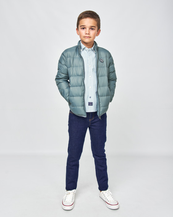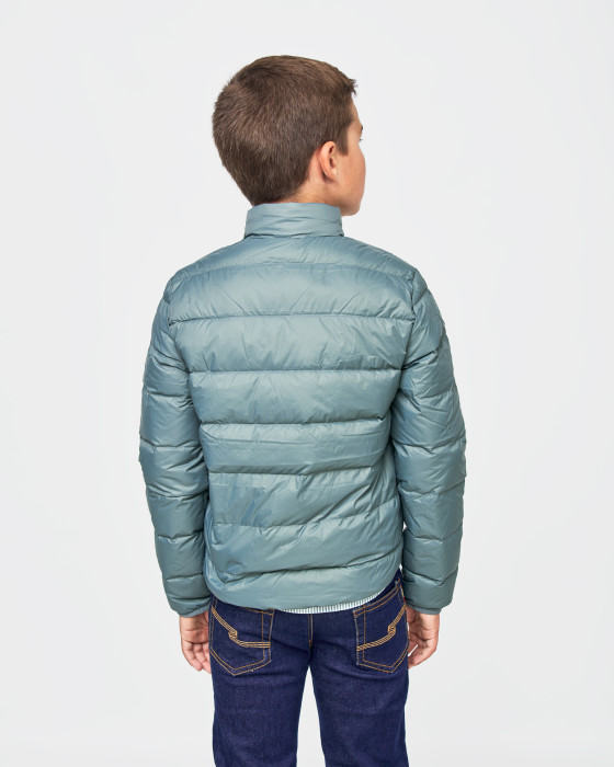 Esta cazadora de plumas para niño es la aliada perfecta para el frío y el entretiempo, ofreciendo máxima calidez con un peso mínimo.Confeccionada con un relleno de plumas y un diseño de acolchado horizontal, es muy ligera y fácil de llevar. Presenta un moderno corte ajustado, cuello alzado y un práctico cierre de cremallera.El toque distintivo lo pone el parche redondo de la marca en el pecho.