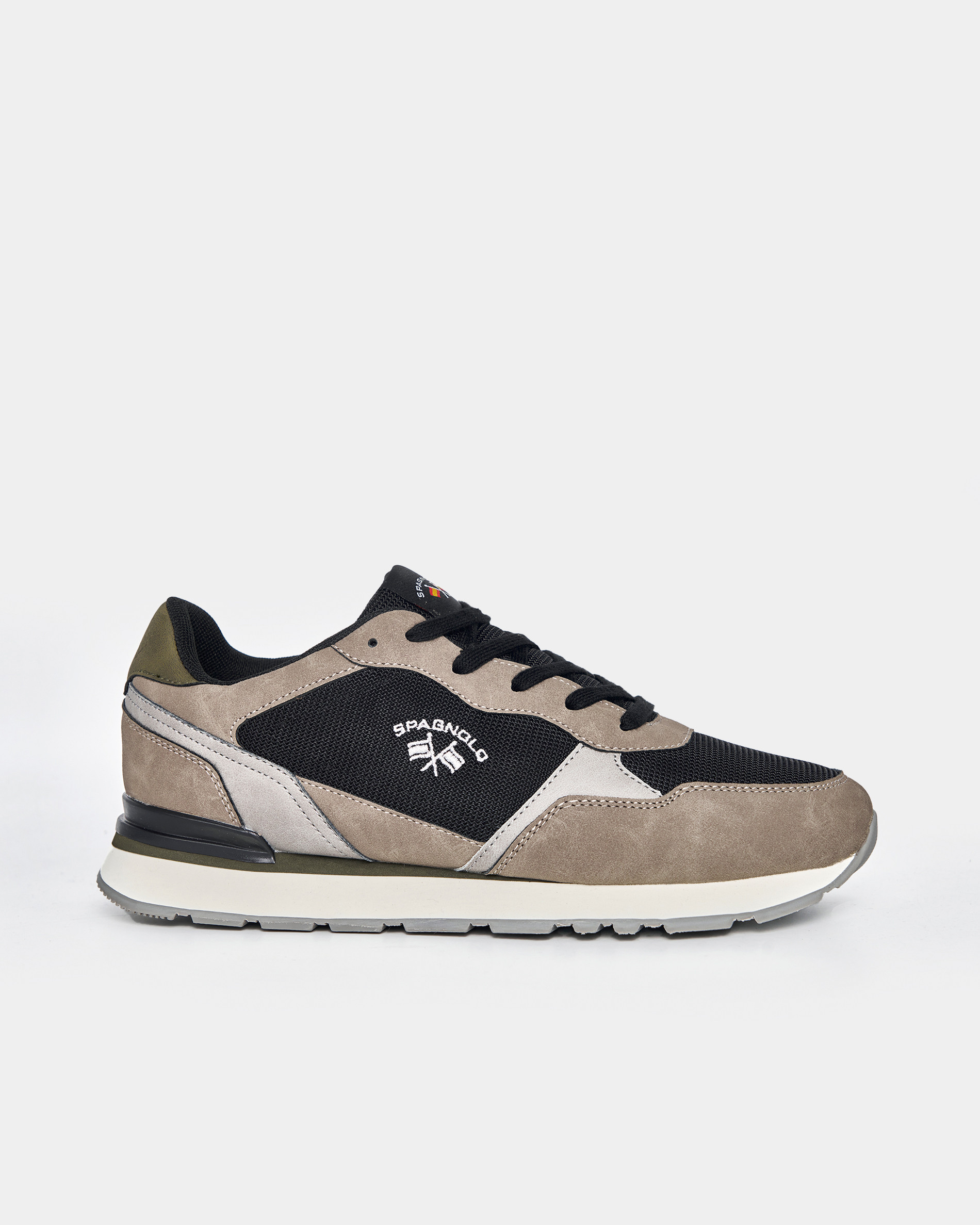 La zapatilla tricolor Spagnolo para hombre destaca por su diseño actual que combina diferentes tonos y texturas, creando un estilo dinámico y sofisticado. Incorpora logo bordado en el lateral, aportando identidad de marca y un acabado premium. Su construcción ligera y su suela flexible garantizan comodidad durante todo el día. Disponible en varios tonos, es perfecta para completar looks casuales c