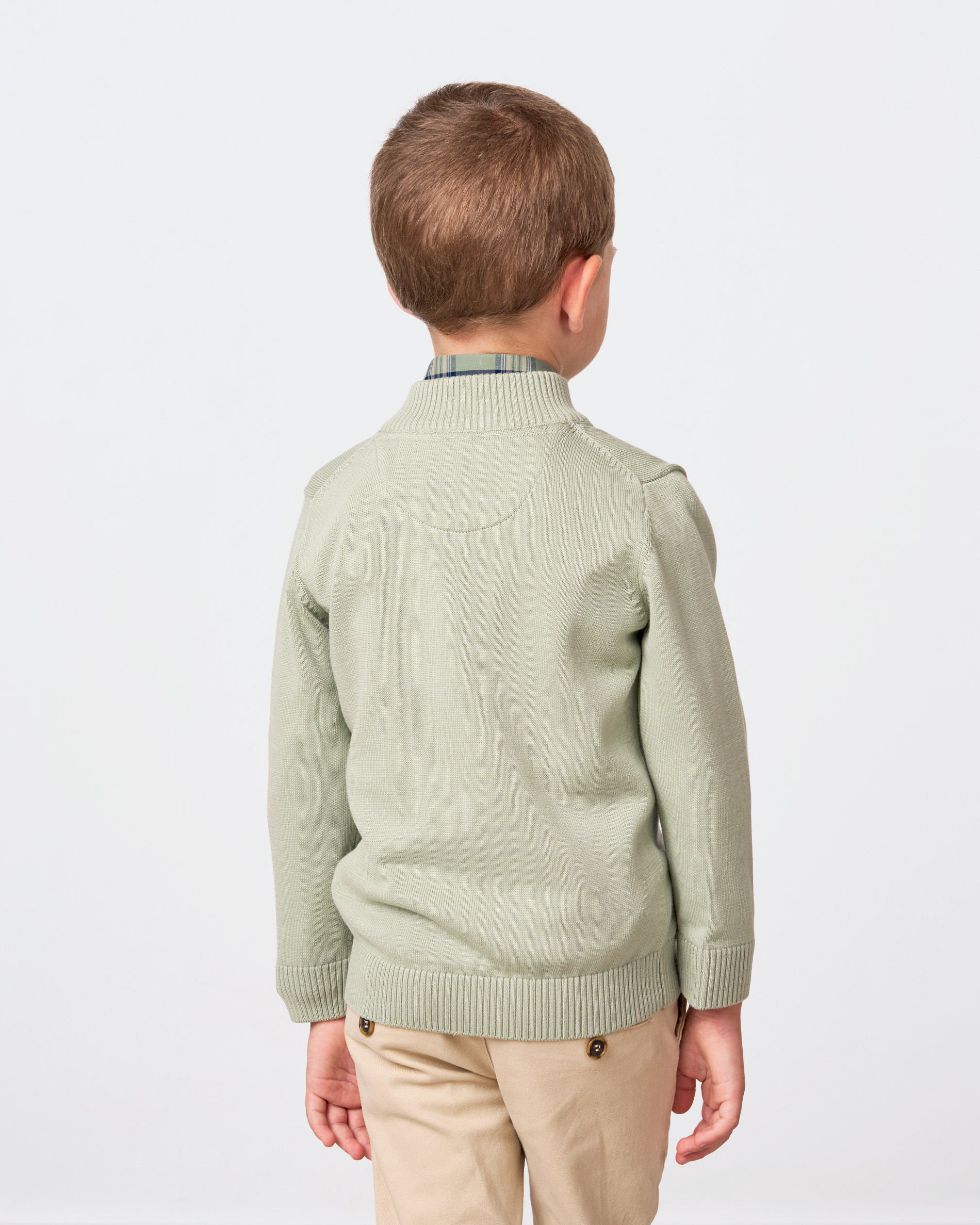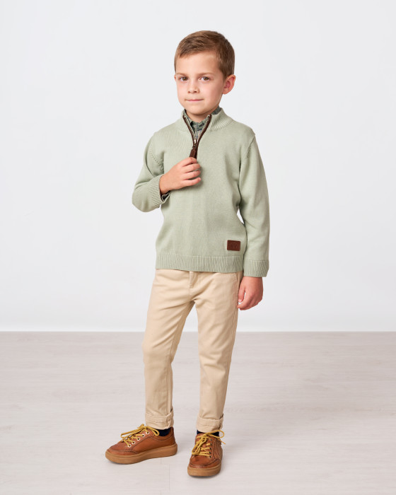 Jersey tejido punto de niño. Cuello pádel cierre cremallera. Etiqueta Spagnolo bordado en cuero.